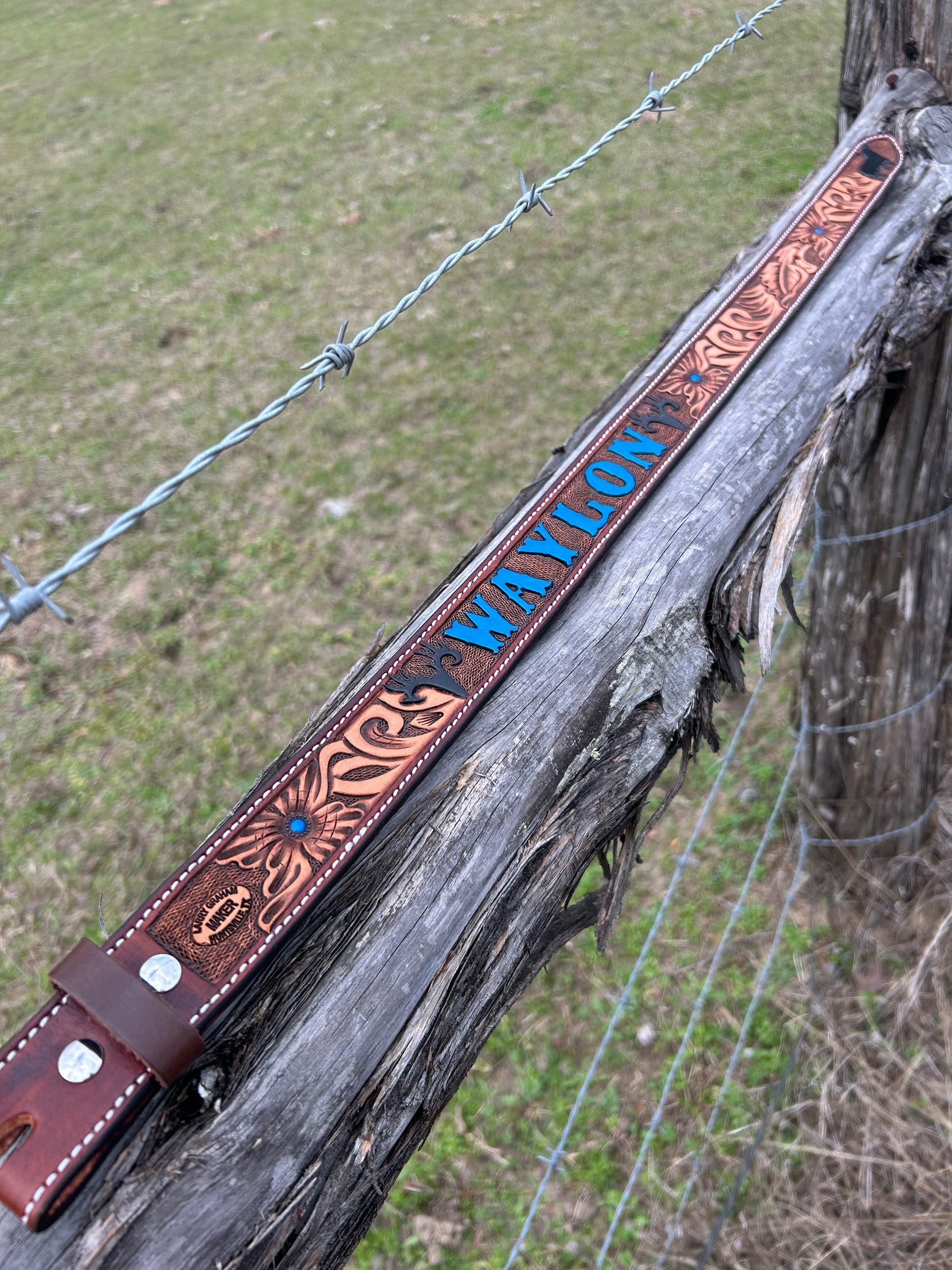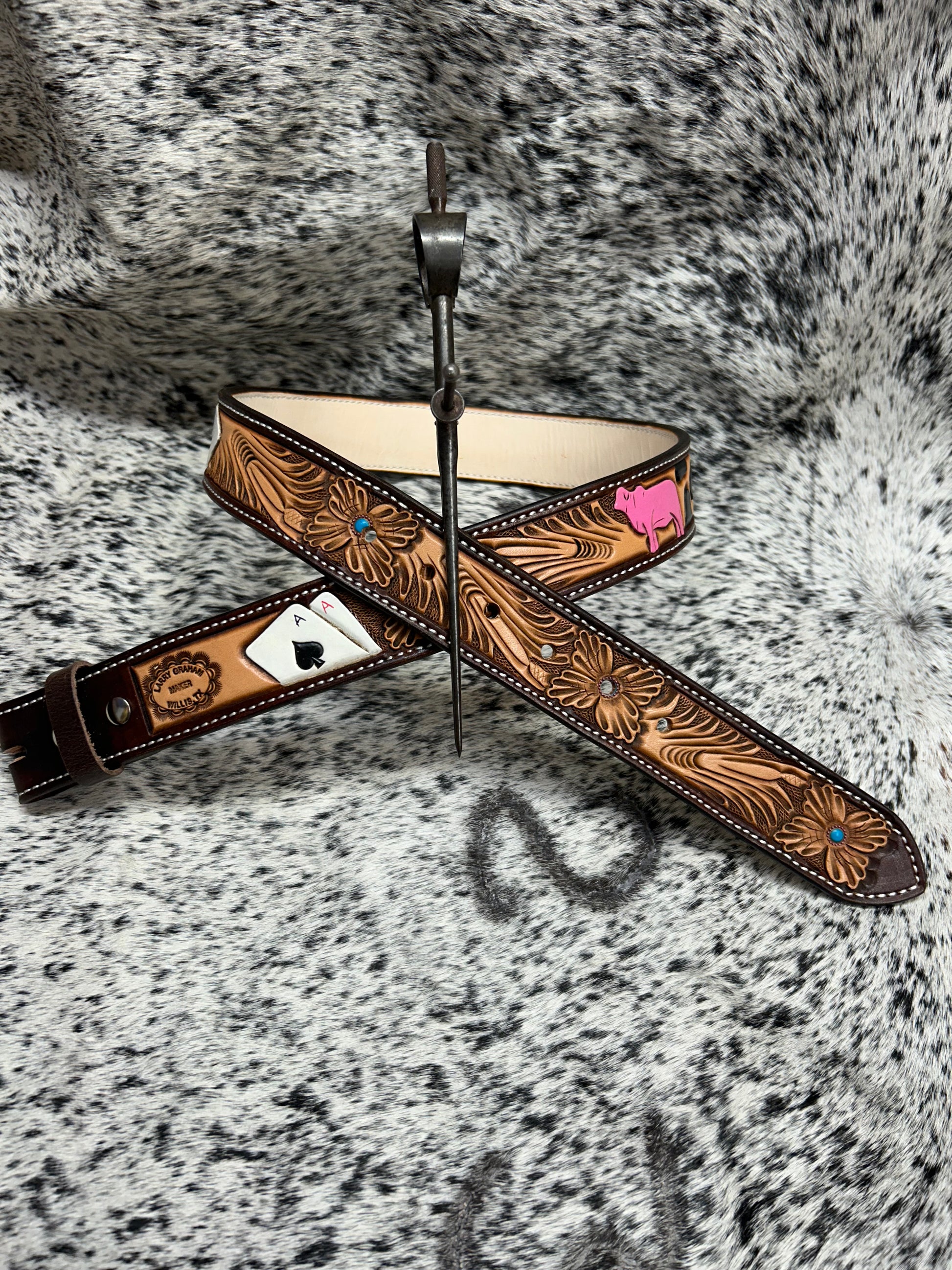 A custom belt from GCL is the perfect waist decor you can get plus you don't have to worry about sagging because no one likes sagging. Custom belts in this category can have your name on the back, initials on the tail, different items mixed in the floral. The sky is the limit here.